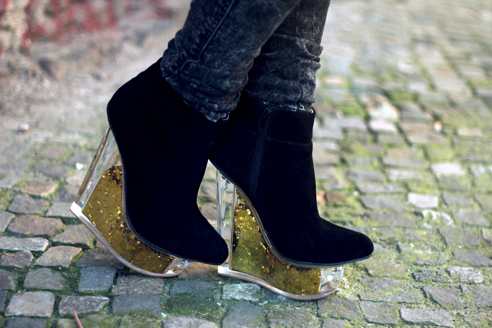 4. Schönes Outfit, nur die Schuhe sind mir eine Nummer zu ausgefallen, mit dem Goldglitter sehen sie etwas nach Karneval aus find ich… :D