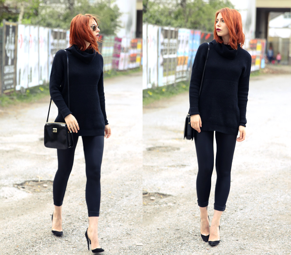 Passend zu der #mebyme Kampagne zeige ich euch einen typischen Look, wie ich ihn zur Zeit am liebsten habe: schlicht und schwarz. Ohne viel Tam-Tam. Das hier ist echt einer dieser Wohlfühllooks, mit denen man nichts falsch machen kann: Oversize Pulli, Leggings und damit das Ganze nicht zu leger wird: Pumps. Auch die schlichte, schwarze Tasche ist mein ewiger Begleiter, weil echt alles reinpasst, was ich im Alltag brauche. Wird Zeit, dass ich sie langsam mal durch meine Lieblingstasche ersetze :D Jedenfalls bin das ich, nicht nur draussen, auch Zuhause :)