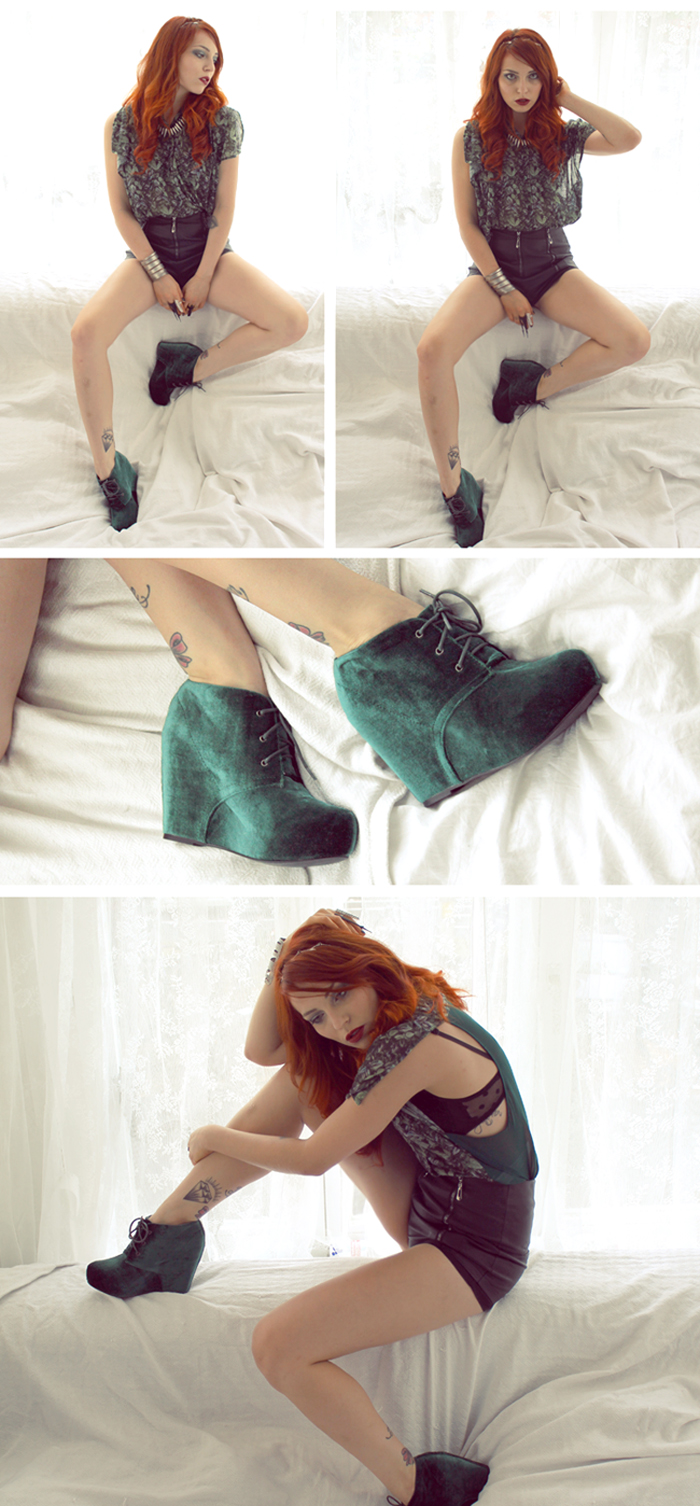Ich meine, sie haben diesen tollen waldgrünen Ton, haben einen Keilabsatz und sind auch noch aus Samt!