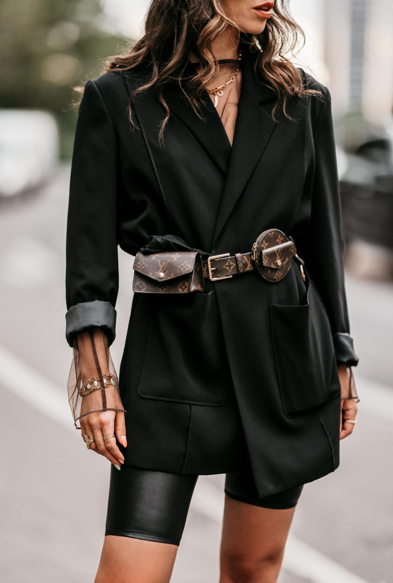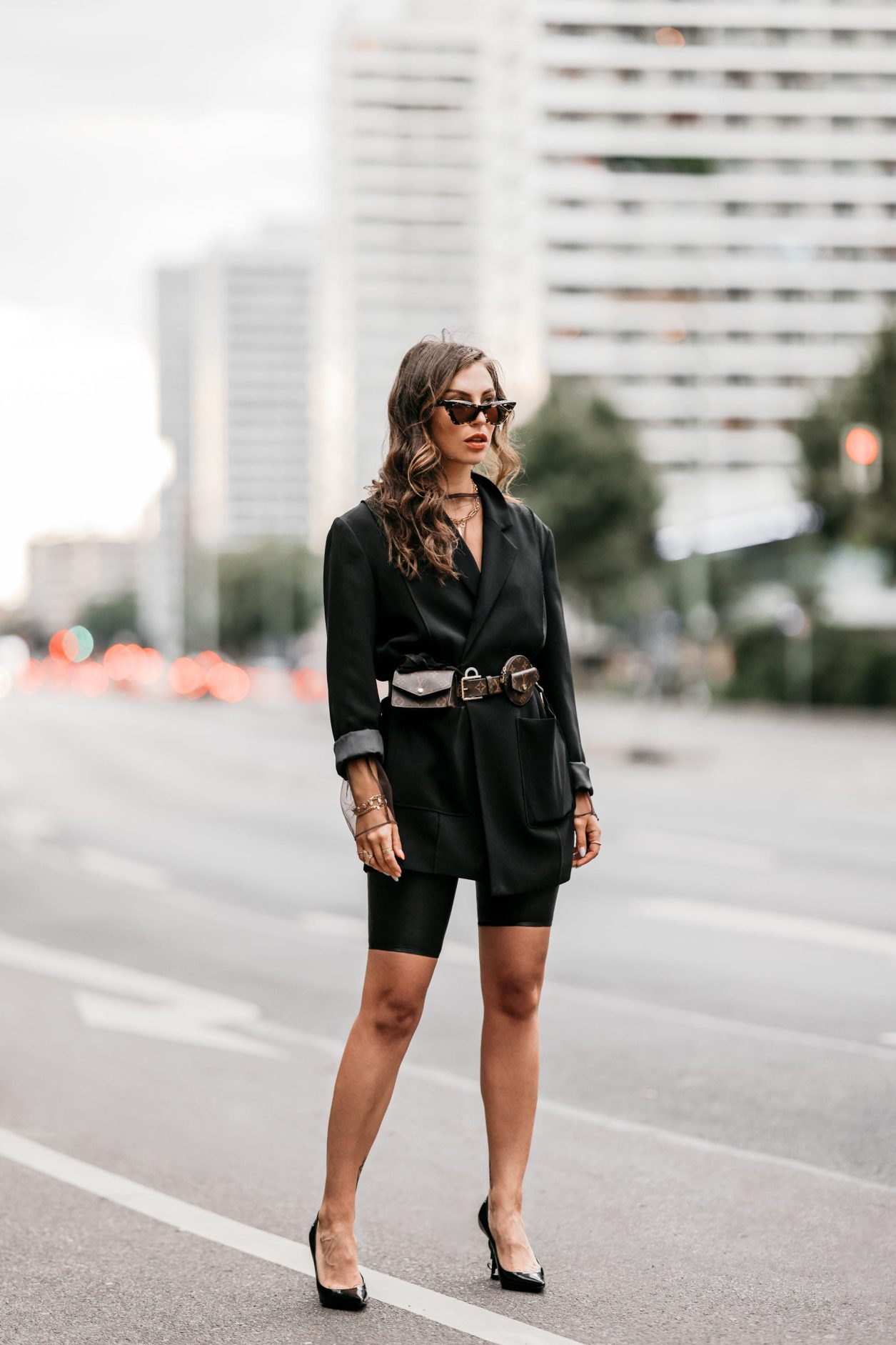 The All Black Look Anzeige Sunglasses: Bottega VenetaBlazer: HopeBelt-bag: Louis VuittonCycling shorts: TopshopPumps: Saint Laurent