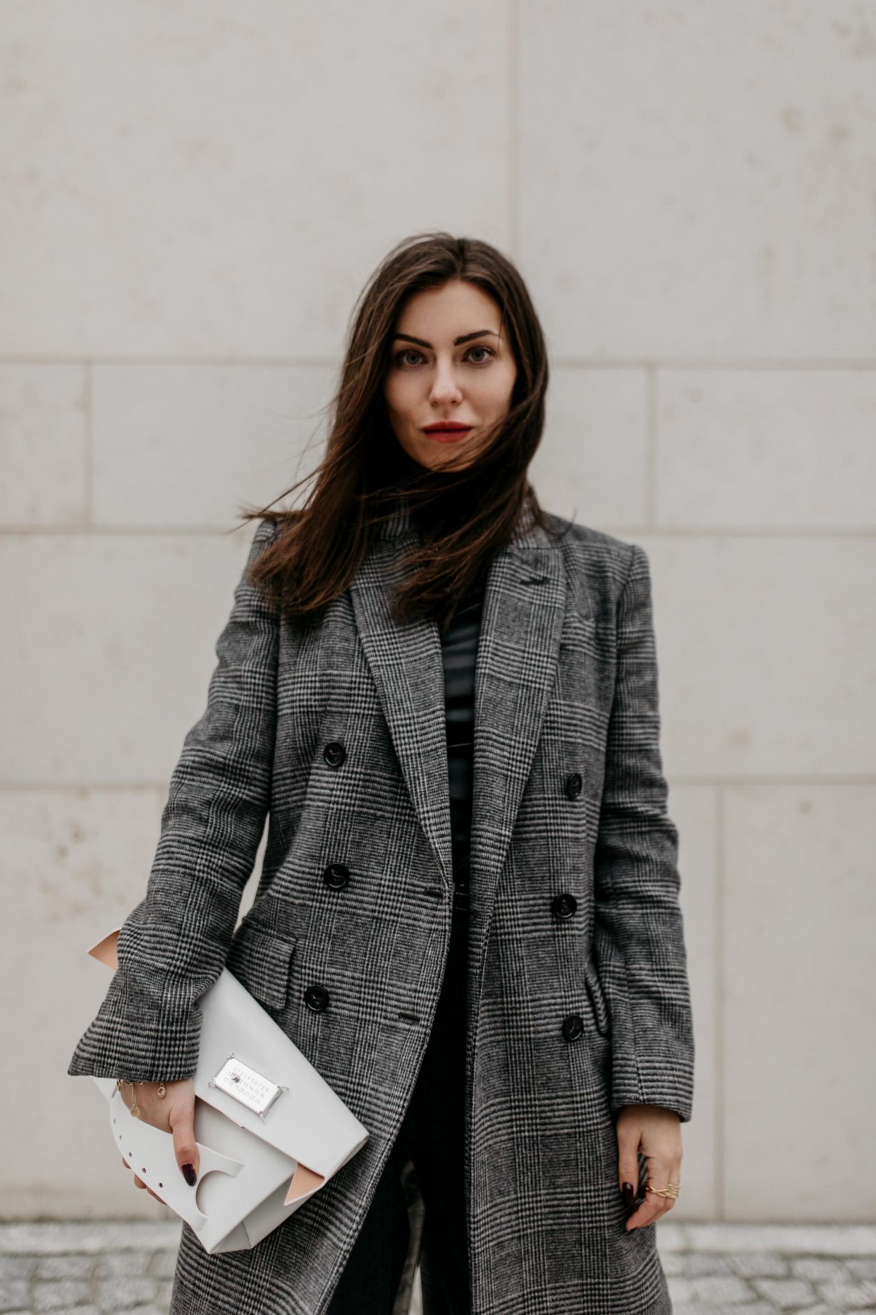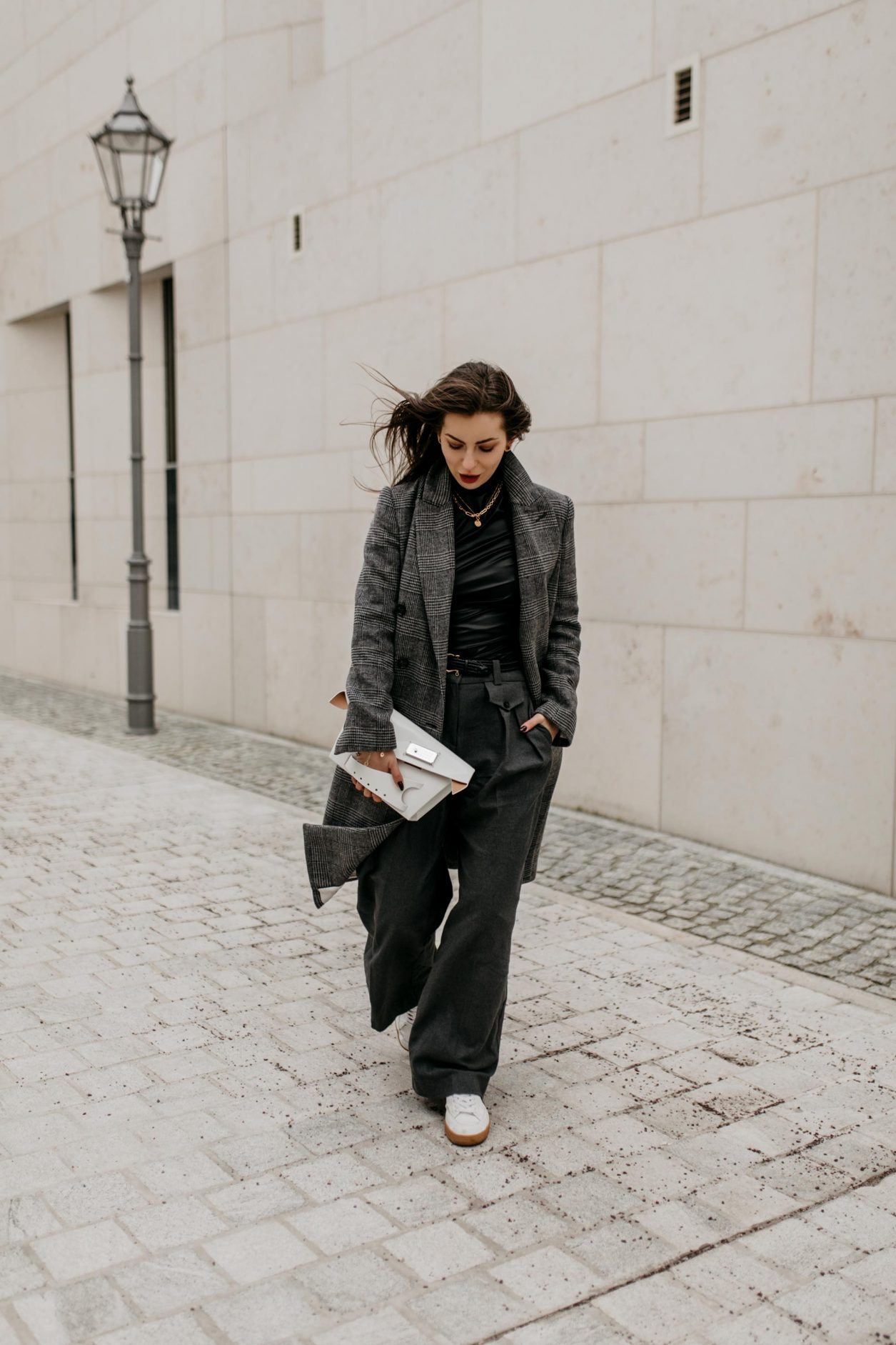 The Grey Wool Coat Anzeige Coat: By Malene BirgerBag: Maison MargielaBlouse: Who What WearTrousers: MangoSneakers: Veja Necklace with pendant & chain necklace: Missoma
