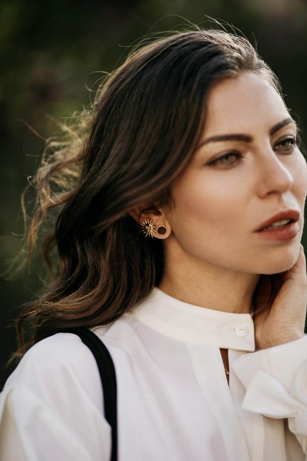 Anzeige | Streetstyle by Masha Sedgwick, photos: Jeremy Moeller | Spring summer fashion trends, everyday outfit inspiration, military chick city look: wearing khaki boyfriend pants by Munthe, white cropped Nobi Talai blouse, mini khaki Lala Berlin leather bag