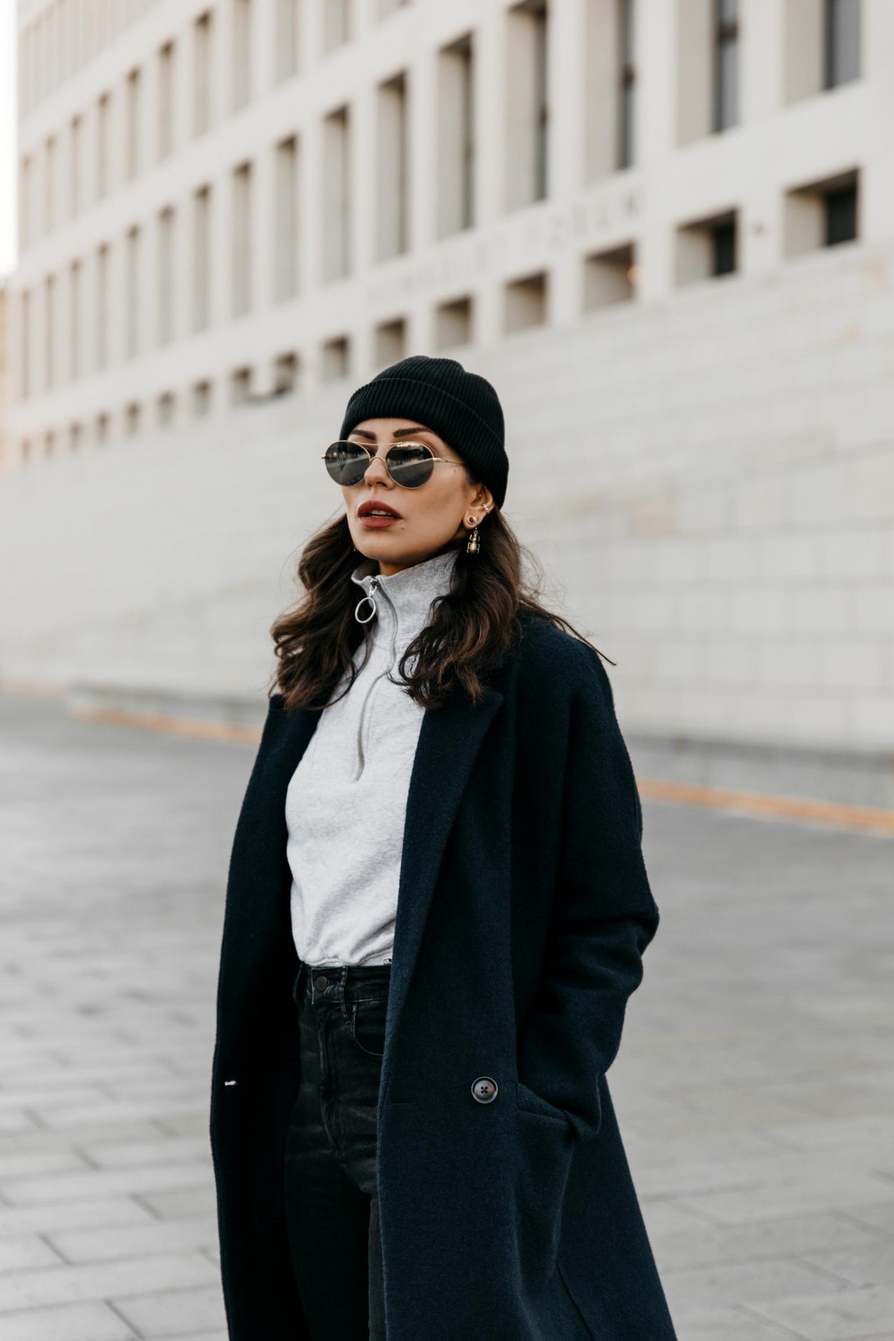 The Everyday Athflow Anzeige Beanie: ArketCoat: LangerchenSweatshirt: H&MJeans: ArmedangelsSneaker: avavav