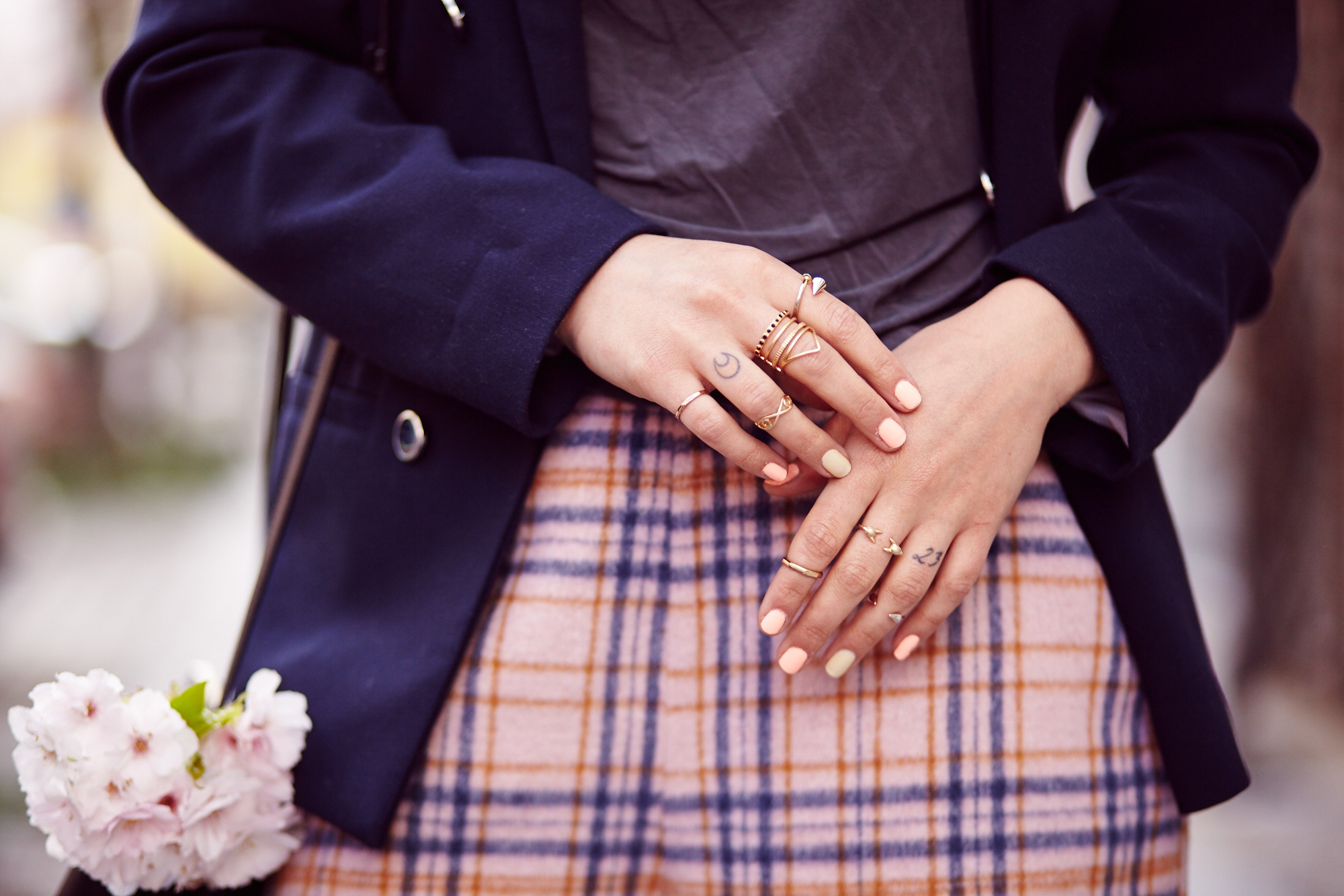 In letzter Zeit fühle ich mich immer mehr zu einer bestimmten Farbe hingezogen: ROSA. Aber eigentlich auch generell zu allen Pastellfarben – das muss an dieser Frühling mit mir machen, von dem grade alle sprechen. Damit das Outfit nicht zu barbiemäßig wirkt kombiniere ich die Farbe – ganz erwachsen – mit einem dunkelblauen Blazer und nudefarbenen Pumps – oder findet ihr die Version mit dem Mantel besser? Ich konnte mich nicht entscheiden. Zugegeben: kein typisches Outfit für mich, aber wäre es nicht auch ziemlich langweilig, wenn das Leben immer nur aus Nicht-Farben besteht? Recently I became a fan of the pink. It must be spring doing that with me. To make this outfit look less girly, but feminine I’ve combined it with a dark blue blazer and nude pumps.
