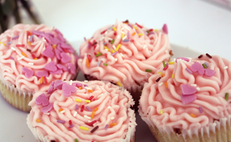8. Das Frosting mithilfe eines Spritzbeutels auftragen (ich mag am liebsten die Sternchenaufsätze) und mit Streuseln verzieren.