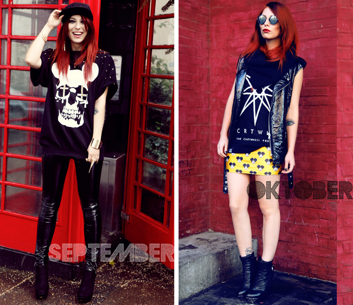 ich glaub, am meisten mag ich dein august-outfit! du trägst viel dunkle farben & da ist so was “helles” mal ein echter hingucker :) ich tendiere auch dazu, viele dunkle farben zu tragen & ich finde es immer beneidenswert, wenn einer zeigen kann, dass ein helles outfit auch edgy/goth sein kann!