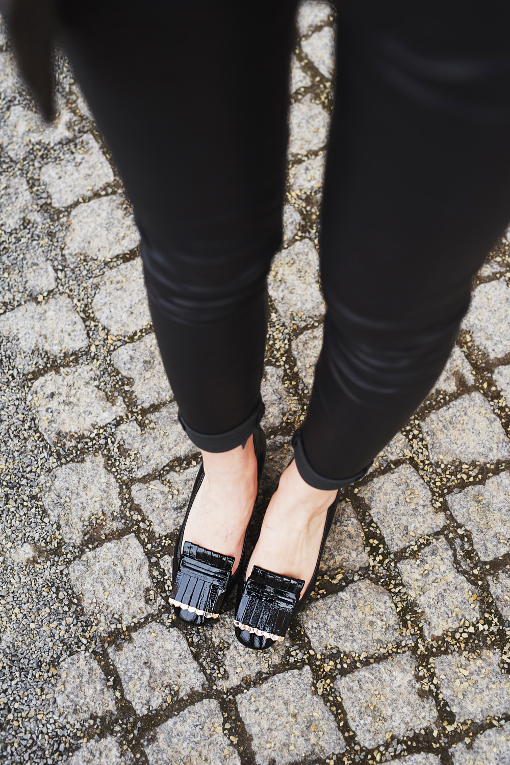Wisst ihr ich gehe nicht viel offline shoppen, hauptsächlich aus dem Grund um Geld zu sparen. Denn sobald ich in einer Shoppingstrasse lande, wird es gefährlich für mein Kontostand. Wenn dann auch noch Sale ist kann ich für nichts mehr garantieren! Ich weiss nicht, was mit mir los ist, aber sobald ich diese Sale-Schilder sehe (ab 50% wird es spannend) werde ich zu einem Schnäppchenjagd-Zombie, der kein Erbarmen kennt. Natürlich kam ich nicht ganz pünktlich zu meinem nächsten Termin, aber dafür mit einer fetten Ausbeute, u.a. die Schuhe und das Oberteil, das ihr hier in in den Fotos seht. Ich mein ernsthaft: wie hätte ich diese zwei tollen Teile nicht mitnehmen können, wo sie doch so schrecklich süß sind und dann auch noch 60% reduziert? Sind wir mal ehrlich: ich hatte keine echte Chance. Natürlich sollte auch der Rest des Outfits Beachtung finden, insbesondere mein wunderbarer Mantel, der defintiv ein echter Hingucker ist!