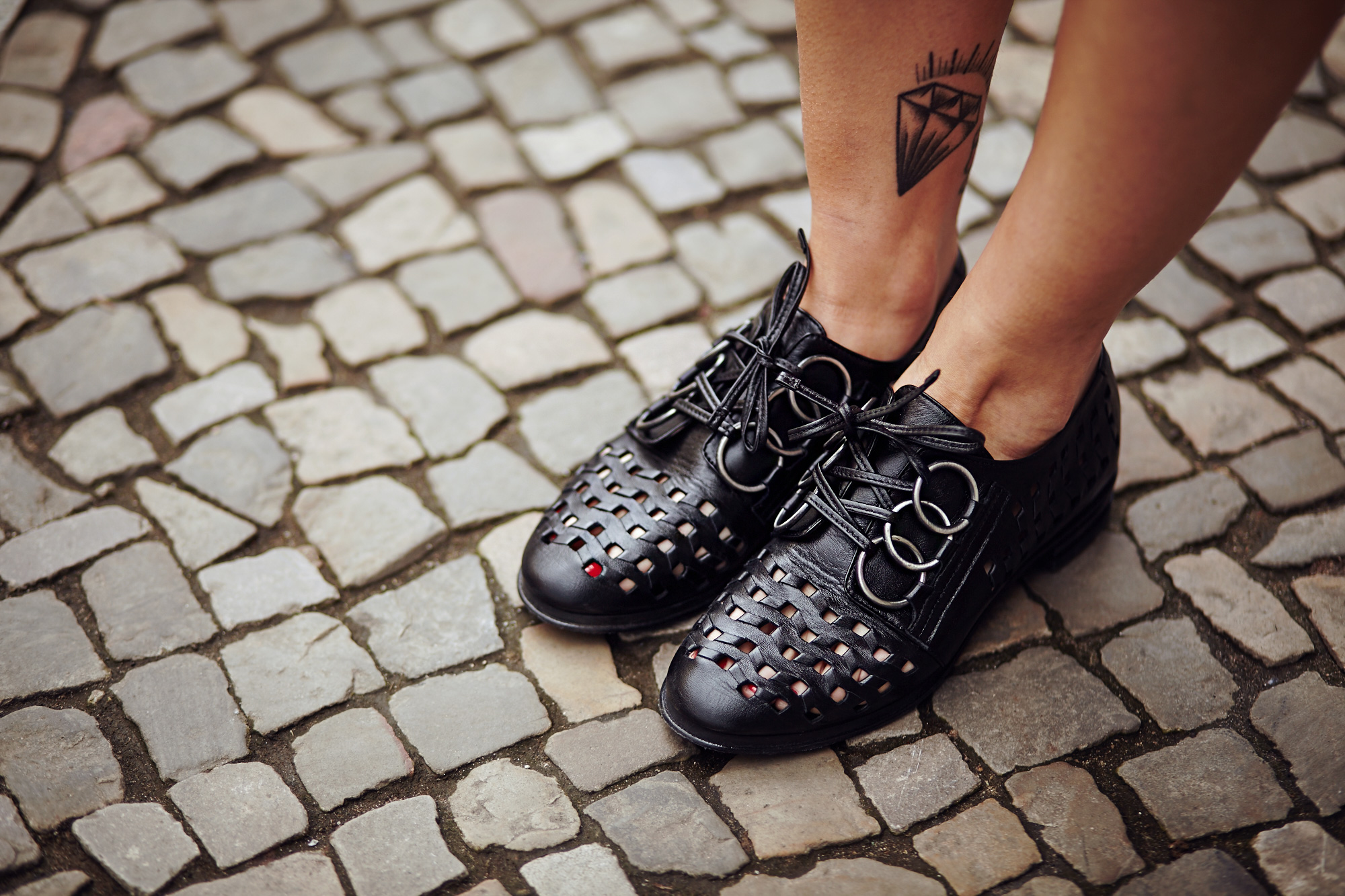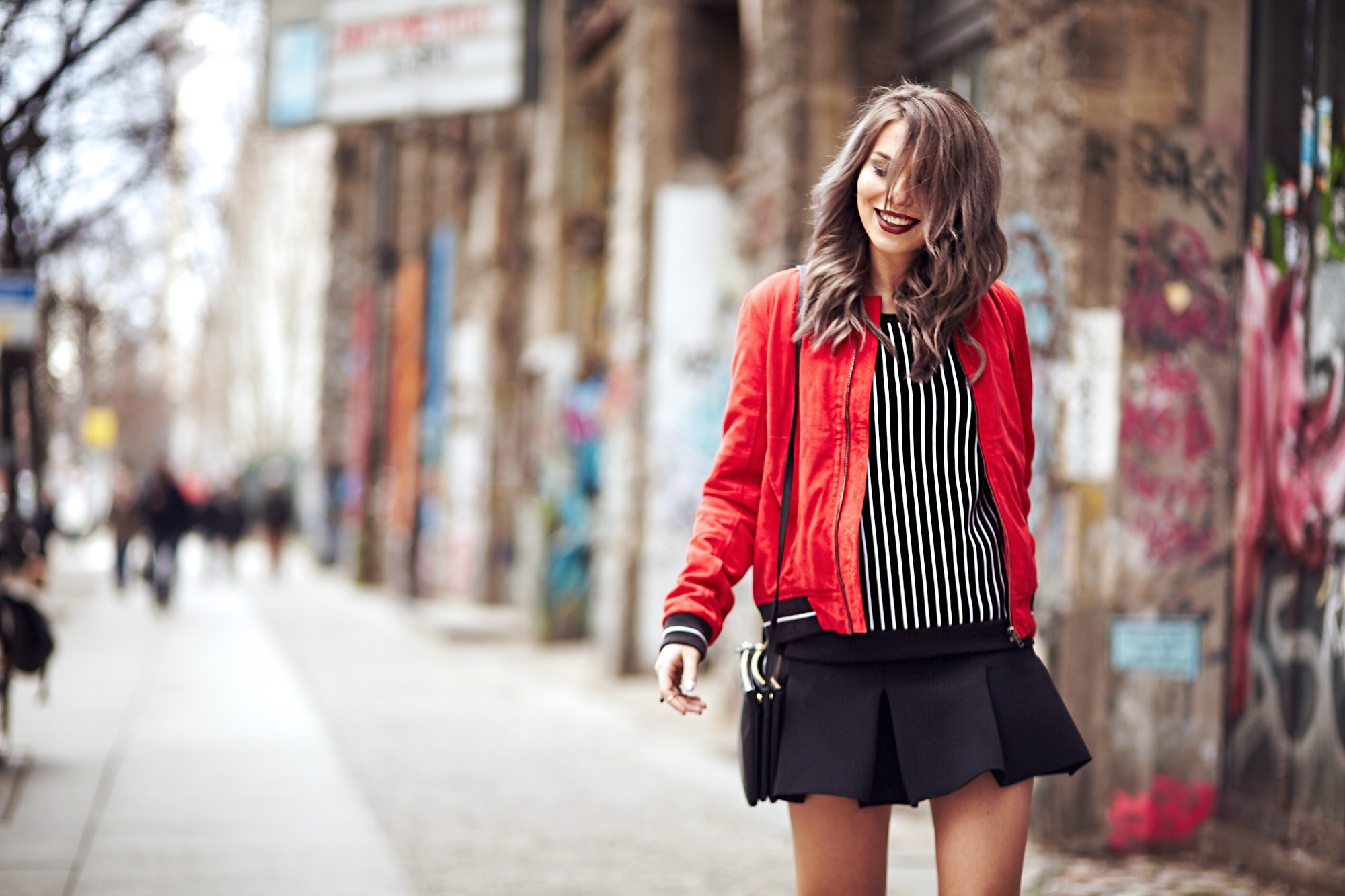 Mein Montagsoutfit heute ist leicht und locker – ein bisschen mädchenhaft, ein bisschen College und ziemlich entspannt. In Berlin bevorzuge ich ja diese unaufgeregten Alltagsoutfits und das hier ist perfekt für schöne Frühlingstage, wie wir sie letzte Woche hatten. Diese Woche sieht es ja leider ein bisschen anders aus, aber naja – was soll man auch vom April erwarten?   Zum Outfit: Lederjacke und Sweater sind einfach ein perfektes Paar, wobei der Rock dem Outfit die nötige Frische verleiht. Auch hier sind die Schuhe mein persönliches Highlight – ich liebe sie sooo sehr ♥ Today’s outfit is more girlish, very college and sexy, but still casual. When I’m in Berlin I prefer these kind of comfy outfits – it’s perfect for a nice spring day.