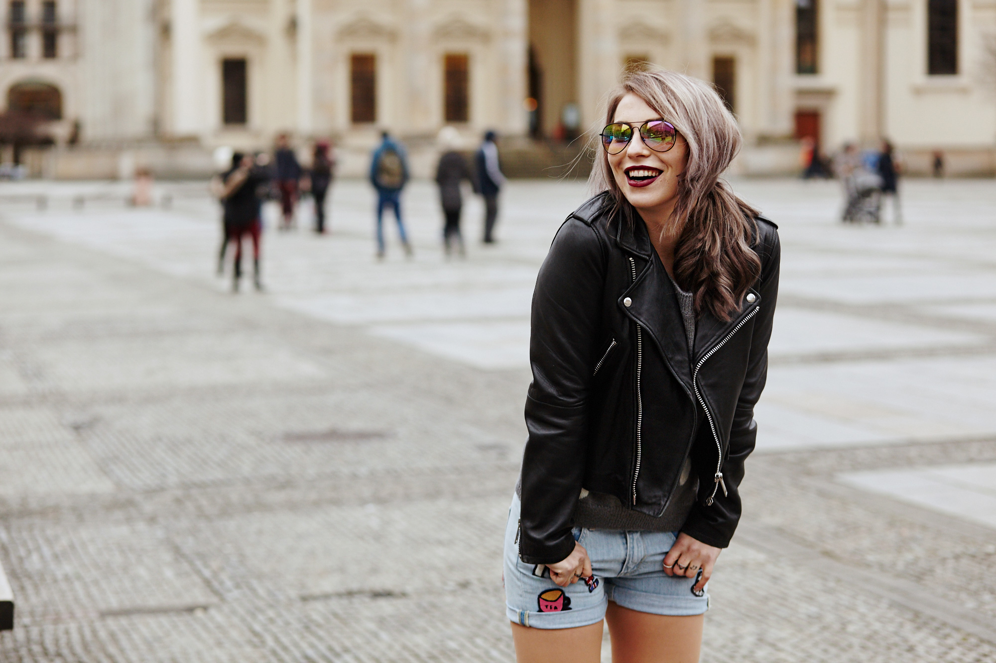 Pulli und Lederjacke sind superschön ;) Shorts mit Strumpfhose kombinieren, dass sehe ich oft. Aber du scheinst eh nicht gefroren zu haben ;)
