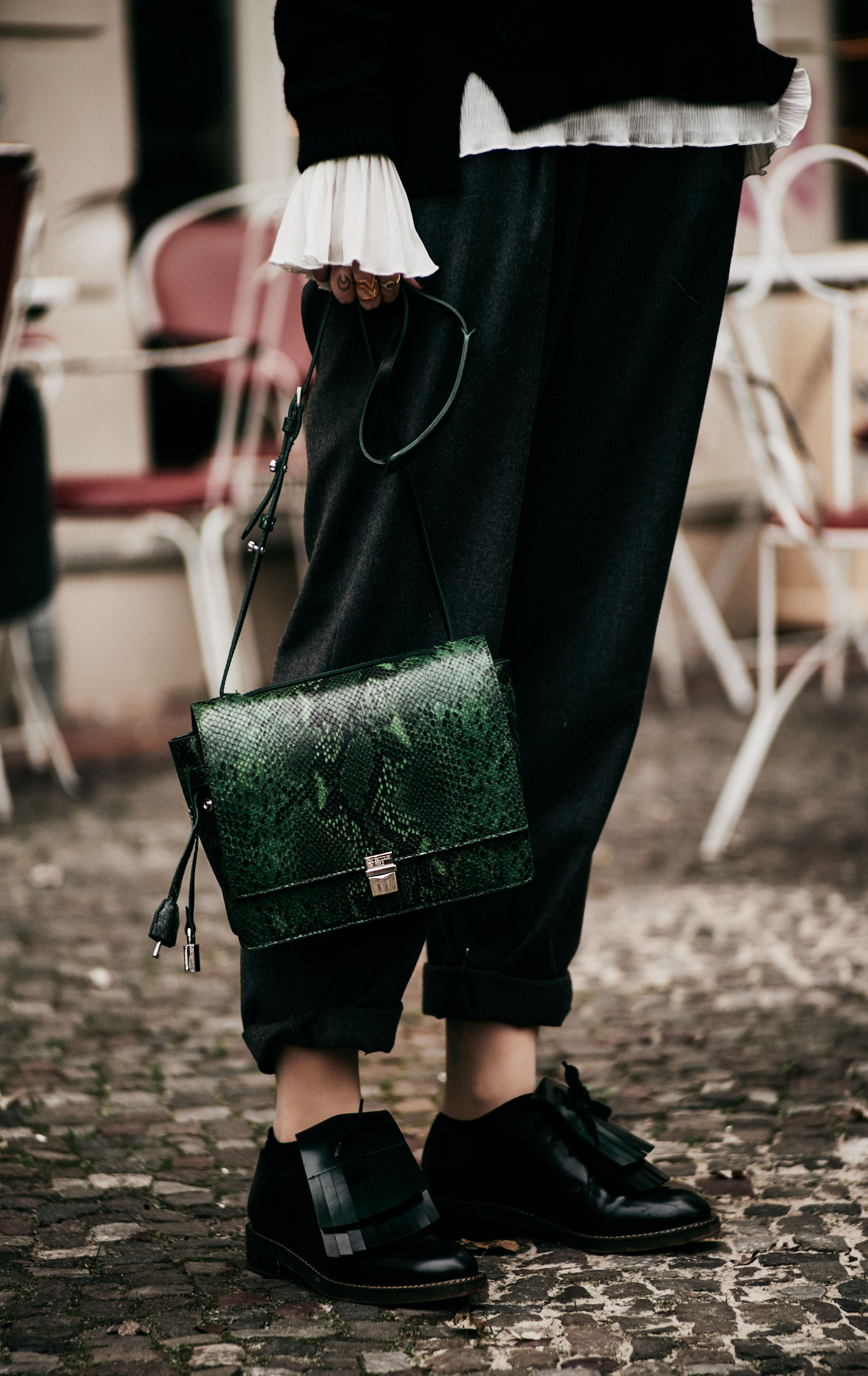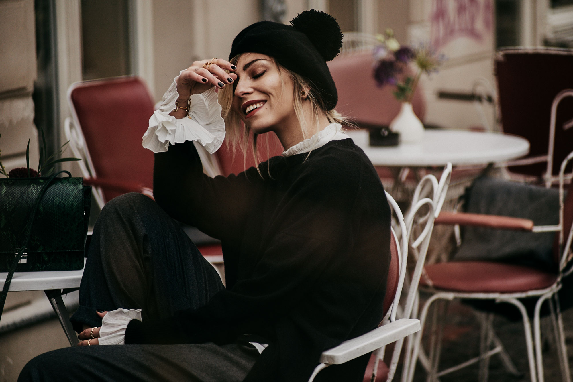 Daran merkt man, dass Mode tatsächlich grade von der Straße diktiert wird – und nicht andersherum. Dabei ist es nicht mal so, dass ich mich gegen Rüschen & Co wehre – im Gegenteil! Dezent eingesetzt als verspieltes Element, um mit einem „harten“ Element zu brechen, so wie bei meinem heutigen Look, finde ich sie sogar ganz wunderbar, aber dieses süß, süßer, am süßesten geht mir grade echt auf die Nerven.   Ich bin nunmal kein Mädchen mehr – und möchte auch nicht wie eins aussehen. Klar, Geschmäcker sind verschieden, aber ich für meinen Teil möchte als erwachsene Frau von Kopf bis Fuss nicht „niedlich“ aussehen. Das ist doch pervers. Ich frage mich echt, ob Designer Mode eigentlich noch zielgruppen- oder nur noch Instagram-/Bloggertauglich gestalten.