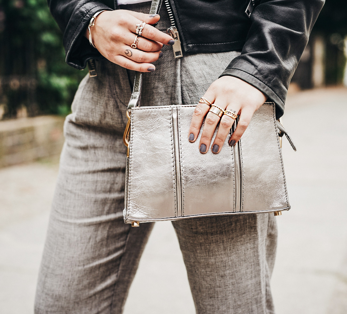 The Look trousers: Rene Lezard shirt: AG jacket: vintage shoes: Coliac bag: Aly Shea jewelry: Georg Jensen
