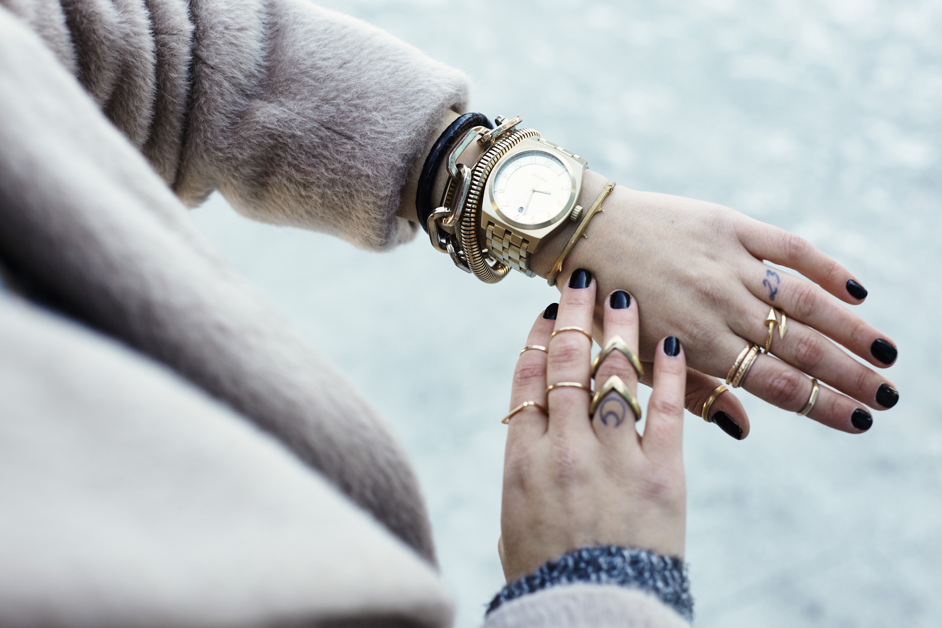 Nachdem ich immer wieder die gleiche Frisur auf meinen Bildern trug hatte ich mal wieder Lust auf einen richtigen casual Look, der Wohlfühl-Atmosphäre ausstrahlt und trotzdem ein bisschen Abwechslung bietet. In letzter Zeit sind diese gemütlichen Looks sowieso meine liebsten und auch in dem fühle ich mich total wohl und könnte einfach tagelang dieselbe Kombi tragen (mache ich natürlich nicht – keine Sorge!). Das liegt vielleicht auch daran, dass ich lauter Teile trage, die zu meinen absoluten Lieblingen im Kleiderschrank zählen: da ist die Celine Bag, die ich einfach noch immer heiss und innig liebe und der Marella Mantel, den ich mir vor über einem Jahr in Moskau gekauft habe und das damals das teuerste Stück in meinem Kleiderschrank war. Aber bei der Farbe und dem Schnitt konnte ich einfach nicht widerstehen… Genauso wenig als ich letzte irgendwie rein zufällig wie es halt manchmal so ist plötzlich in der Sale Abteilung im Galeries LaFayette landete und mich in so viele Teile verliebte, dass ich mit zwei großen Tüten nach Hause fuhr. Zwei der Teile zeige ich euch im heutigen Outfit, nämlich einmal der Pulli von Essentiel Antwerp, die einfach mega schöne Kleidung machen (zwei weitere Stricksachen sind auch noch in der Tüte gelandet) und die Schuhe von Strategia. Strategia hatte ich bisher so gar nicht auf dem Schirm, aber jetzt wo ich die mal gegoogelt habe find ich die Schuhe so cool, dass sie definitiv Potential haben zu einer meiner liebsten Schuhmarken zu avancieren – nicht zuletzt, weil die Dinger so uuuuuneeeendlich bequem sind!! Doch auch der Rest dürfte euch bereits bekannt vorkommen: da wäre die Jeans von Pepe Jeans, die sehr vorteilhafte Beine macht und mein Lieblingsschmuck und obwohl das Outfit mal wieder aus lauter Lieblingssachen besteht, sieht es doch ganz anders aus als meine normalen Looks. Ob es wohl an der Brille liegt? Today’s outfit is more casual, but those cozy looks are my favorite ones anyway. This one has this feel-good atmosphere – maybe because I wear lots of items I really love? There is this coat for example, that I bought a year ago in Moscow. Or my first real designer bag – the Celine Trio. And recently I went to Galeries LaFayette and bought this awesome jumper from Essentiel Antwerp and this cool boots from Strategia. I didn’t knew both labels before, but I checked out the last collection and I just love it! So all in all it’s an outfit I could wear every day :)