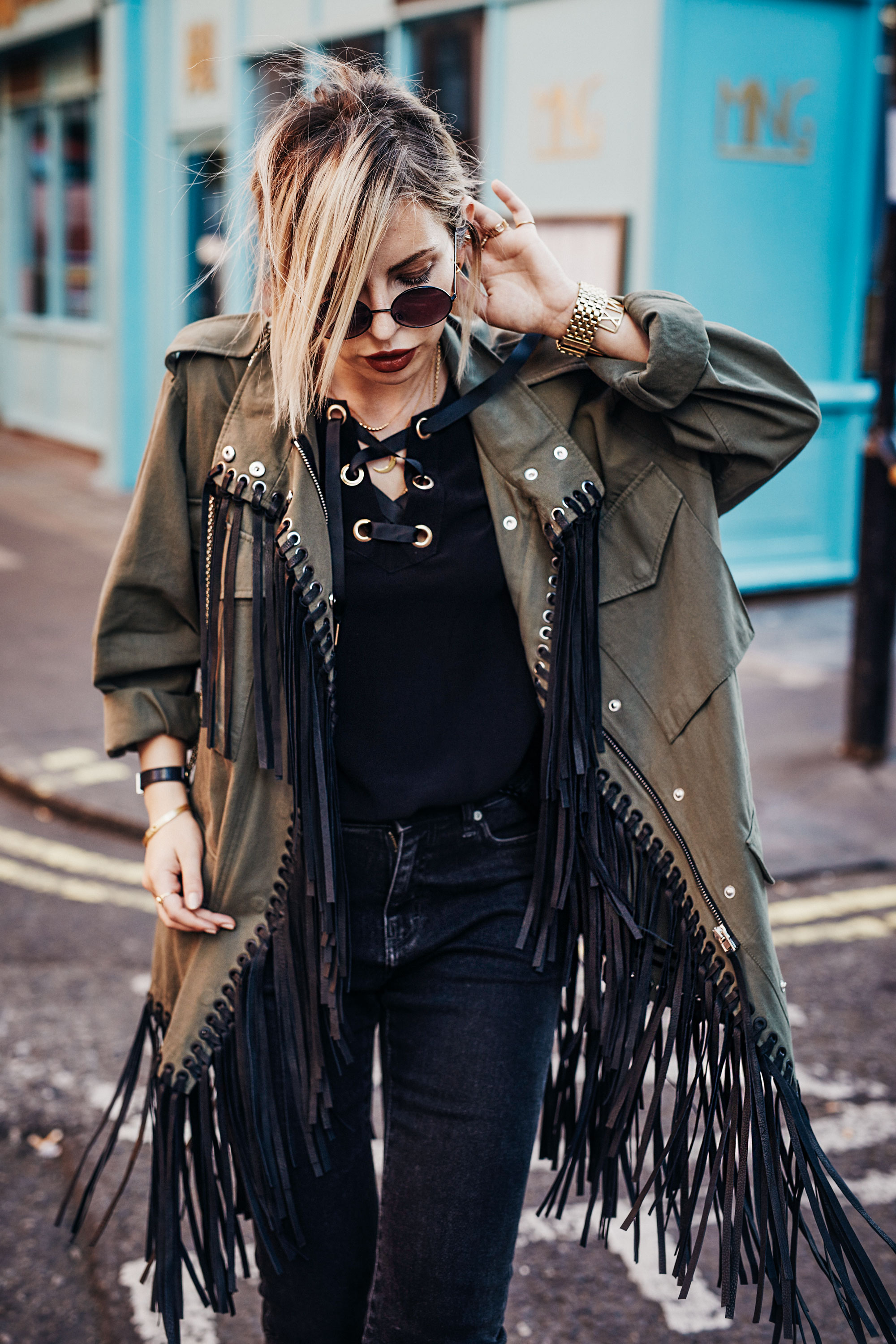 The fringed jacket | shooting location: London | brands: parka from Alexander Wang, fringed heels from Jimmy Choo, small bag from Sonia Rykiel | style: 70s, boho, edgy, hippie The fringed jacket | shooting location: London | brands: parka from Alexander Wang, fringed heels from Jimmy Choo, small bag from Sonia Rykiel | style: 70s, boho, edgy, hippie The fringed jacket | shooting location: London | brands: parka from Alexander Wang, fringed heels from Jimmy Choo, small bag from Sonia Rykiel | style: 70s, boho, edgy, hippie