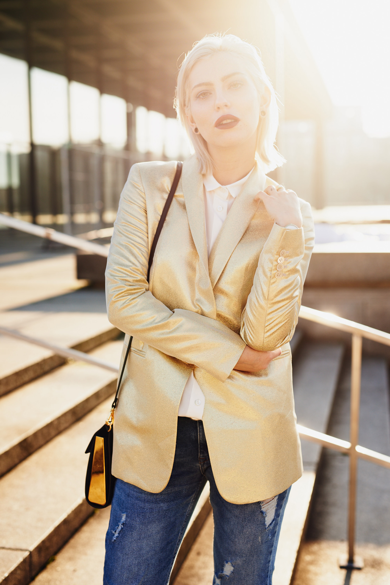 view more details on my blog | featuring Melampo, Uterqüe, Marni | Silvester, New Years Eve shiny, golden blazerview more details on my blog | featuring Melampo, Uterqüe, Marni | Silvester, New Years Eve shiny, golden blazerview more details on my blog | featuring Melampo, Uterqüe, Marni | Silvester, New Years Eve shiny, golden blazerview more details on my blog | featuring Melampo, Uterqüe, Marni | Silvester, New Years Eve shiny, golden blazerview more details on my blog | featuring Melampo, Uterqüe, Marni | Silvester, New Years Eve shiny, golden blazerview more details on my blog | featuring Melampo, Uterqüe, Marni | Silvester, New Years Eve shiny, golden blazerview more details on my blog | featuring Melampo, Uterqüe, Marni | Silvester, New Years Eve shiny, golden blazerview more details on my blog | featuring Melampo, Uterqüe, Marni | Silvester, New Years Eve shiny, golden blazerview more details on my blog | featuring Melampo, Uterqüe, Marni | Silvester, New Years Eve shiny, golden blazerview more details on my blog | featuring Melampo, Uterqüe, Marni | Silvester, New Years Eve shiny, golden blazer Langsam rückt Silvester immer näher und ich liebe es Silvesteroutfits zu planen, schlichtweg weil man kaum overdressed sein kann und schon mit einem auffälligen Teil eine Silvesterparty rockt. Ein gutes Beispiel ist dieser goldene Blazer: er glitzert und passt perfekt zu meinem Teint und meinen Haaren. Ich achte ja sonst bei Kleidungsstücken nicht immer so drauf, ob sie mich besonders vorteilhaft erscheinen lassen, aber dieser Blazer schien mich regelrecht strahlen. Kombiniert mit einer schlichten Seidenbluse, einer Jeans und schicken Schuhen entsteht ein cooler, aber trotzdem festlicher Tomboy-Look.   Übrigens: Melampo ist ein Label aus Mailand, das ich hier in Berlin vor Kurzem entdeckt habe und mich spontan verliebt habe! Es ist bis heute ein kleines Familienunternehmen und wird mittlerweile von der Enkelin des Gründers geführt, die großen Wert auf Qualität legt und so wird jedes einzelne Stück bis heute liebevoll in Italien hergestellt. Die Kollektion ist übersichtlich, aber dafür ist wirklich jedes einzelne Teil wunderschön und zeitlos. Schaut einfach mal im Berliner Store vorbei, wenn ihr mal in der Nähe seid und verliebt euch :) New Years Eve is coming and I love to plan my outfits, because you can never be overdressed! My blazer is a good example: it shines and sparkles and fits perfectly to my hair! Together with a silk shirt, a simple jeans and elegant shoes it’s a cool, but festive tomboy outfit. Свои новогодние наряды я люблю планировать заранее – ведь в этот вечер можно позволить себе все, что угодно! Яркие и необычные вещи как нельзя более уместны на новогодней вечеринке. Хороший пример – этот золотистый блейзер с блестками, который идеально подходит к цвету моих волос. В сочетании с простой шелковой блузкой, джинсами и элегантными туфлями получается стильный и праздничный наряд в стиле Tomboy.   Кстати: Melampo – это миланский бренд, который я недавно открыла для себя здесь, в Берлине, и сразу же влюбилась! Melampo – небольшой семейный бизнес, уделяющий большое внимание качеству. Новая коллекция бренда состоит из красивых и вечно актуальных вещей, с любовью произведенных в Италии. Рекомендую заглянуть в берлинский магазин марки, если вы окажетесь неподалеку!   The Look shirt: Melampo blazer | Melampo shoes | Uterqüe bag | Marni jeans | Bershka &nsbp;   Melampo Store   Linienstrasse 54,  Berlin-Mitte Germany Melampo Store   Linienstrasse 54,  Berlin-Mitte Germany Photo: © Lucrecia Althabe