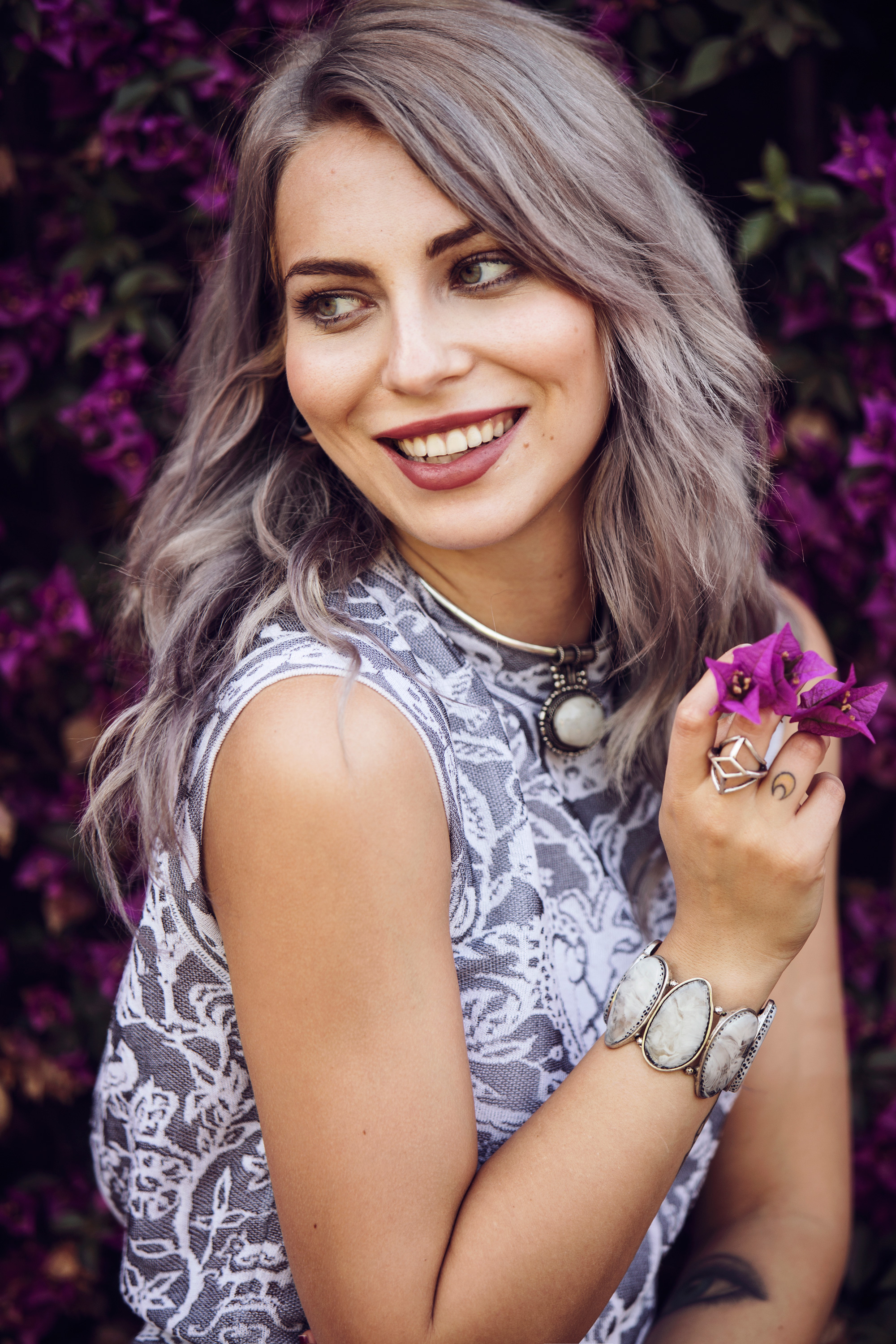 Die pinke Blumenwand ist ja mal genial und eine perfekte Location zum fotografieren.