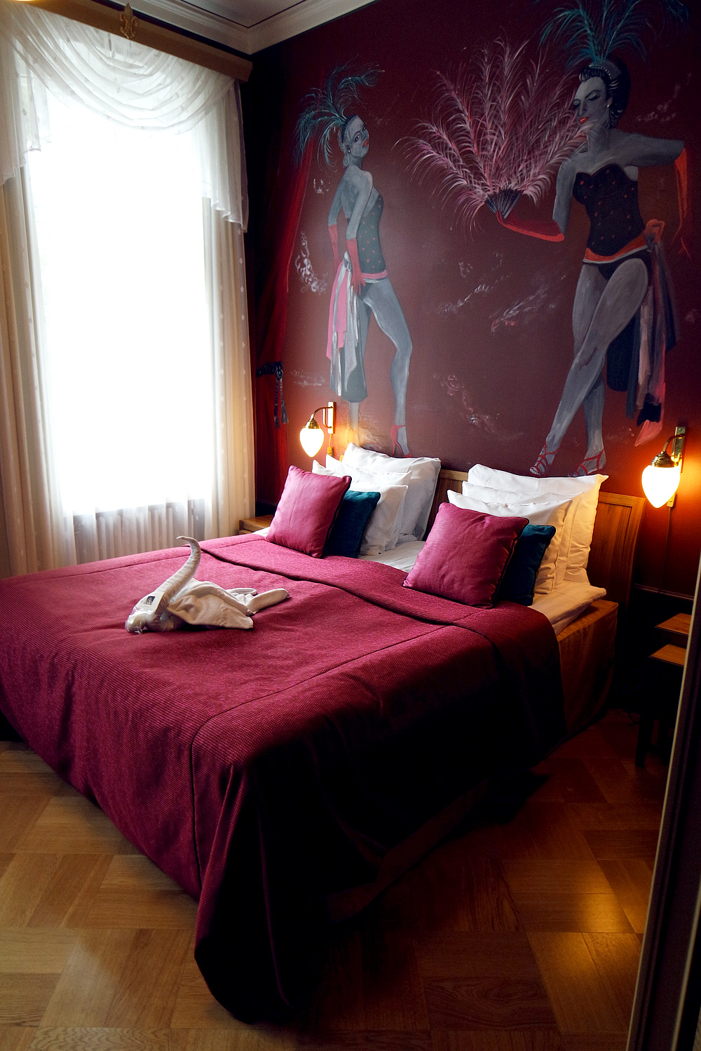 Flüge nach Helsinki sind gar nicht so teuer! Schon für unter 200 EUR kommt man günstig hin und zurück! Auch die Hotelpreise halten sich in Grenzen und liegen unter dem Schnitt, den man in Skandinavien und Russland sonst so zahlt. Am besten besucht ihr ganz regelmäßig Seiten wie Urlaubspiraten, die regelmäßig über Reisedeals informieren und wer weiss, vielleicht ist auch schon morgen Helsinki unter den Schnäppchenangeboten bei :) Wir sind mit Air Berlin geflogen und haben im Solo Sokos Hotel Aleksanteri genächtigt. Es ist ein ziemlich gutes Designhotel direkt im Designer District neben einem „kleinen“ Theater. Unser Zimmer war ein Themenzimmer wie man sieht: Betty’s Boudoir ;)