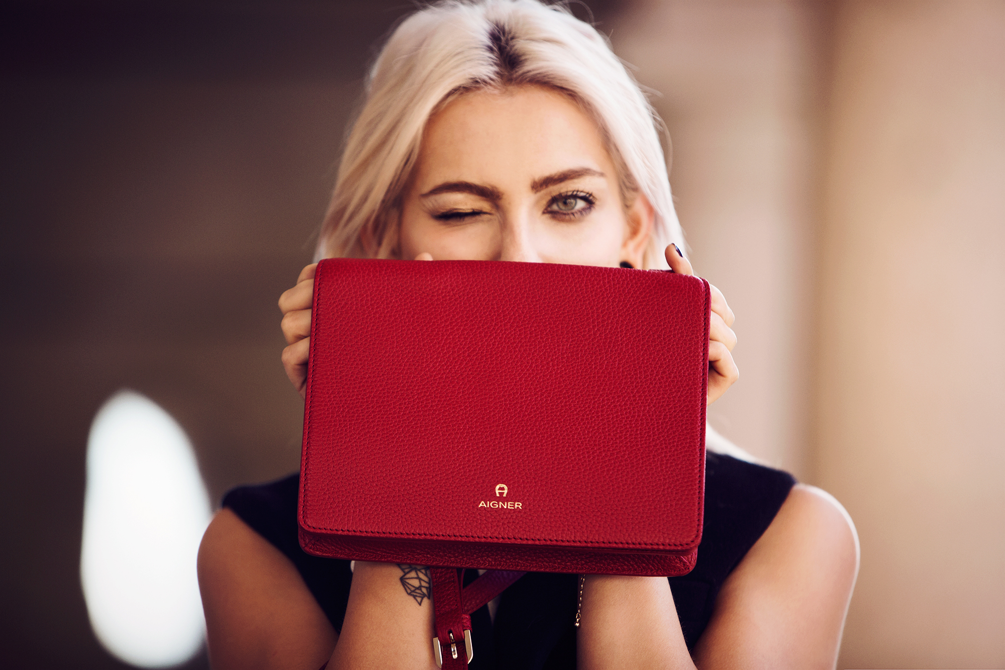 Die rote Tasche hier ist auf jeden Fall ein sehr schöner Eyecatcher.