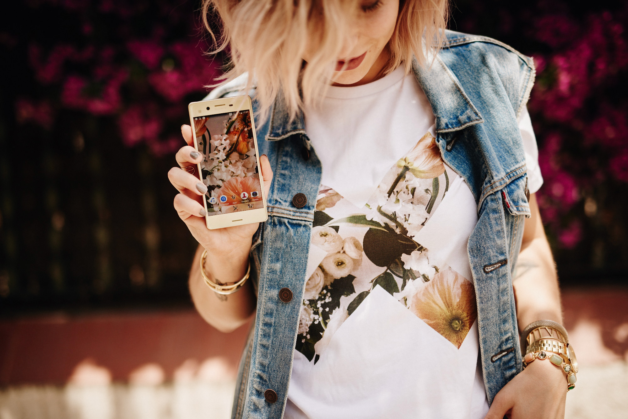 Auch die anderen Shirts der „X Momente by Sony“ Kollektion zeigen besondere Momente, die wir im Alltag mit unseren Smartphones einfangen und für immer speichern. Grade für mich als Bloggerin gehört das Festhalten von Momenten in Bildern zu meinem Alltag und sogar zu meinem Beruf. Meine Alltagsmomente teile ich dann mit meinem Sony Xperia auf sozialen Netzwerken und meinem Blog mit der ganzen Welt. Eine 23 Megapixel-Kamera macht mir meinen Job dabei um einiges einfacher, denn die Qualität der Bilder ist wirklich unschlagbar und die Kamera-Startgeschwindigkeit lässt mich jeden noch so kurzen Moment blitzschnell und gestochen scharf aufnehmen. Dazu kommt, dass es auch noch ziemlich stylish daherkommt in Lime-Gold (mein Favorit!), Rosé-Gold, Weiss oder Schwarz. So passt es nämlich auch garantiert zu meinem Outfit und ist mein persönliches Must-have!