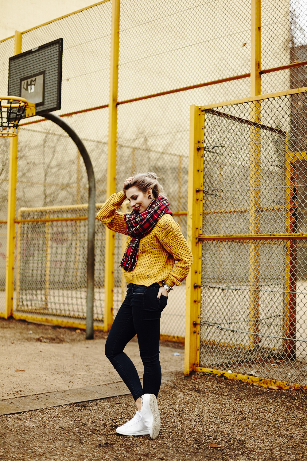 Die Location erinnert mich irgendwie total an die typischen Basektball-Felder in amerikanischen Vierteln oder so :D find ich super cool sieht gar nicht so aus wie Berlin bzw. Deutschland und dazu passt es auch noch perfekt zu deinem Pulli, love